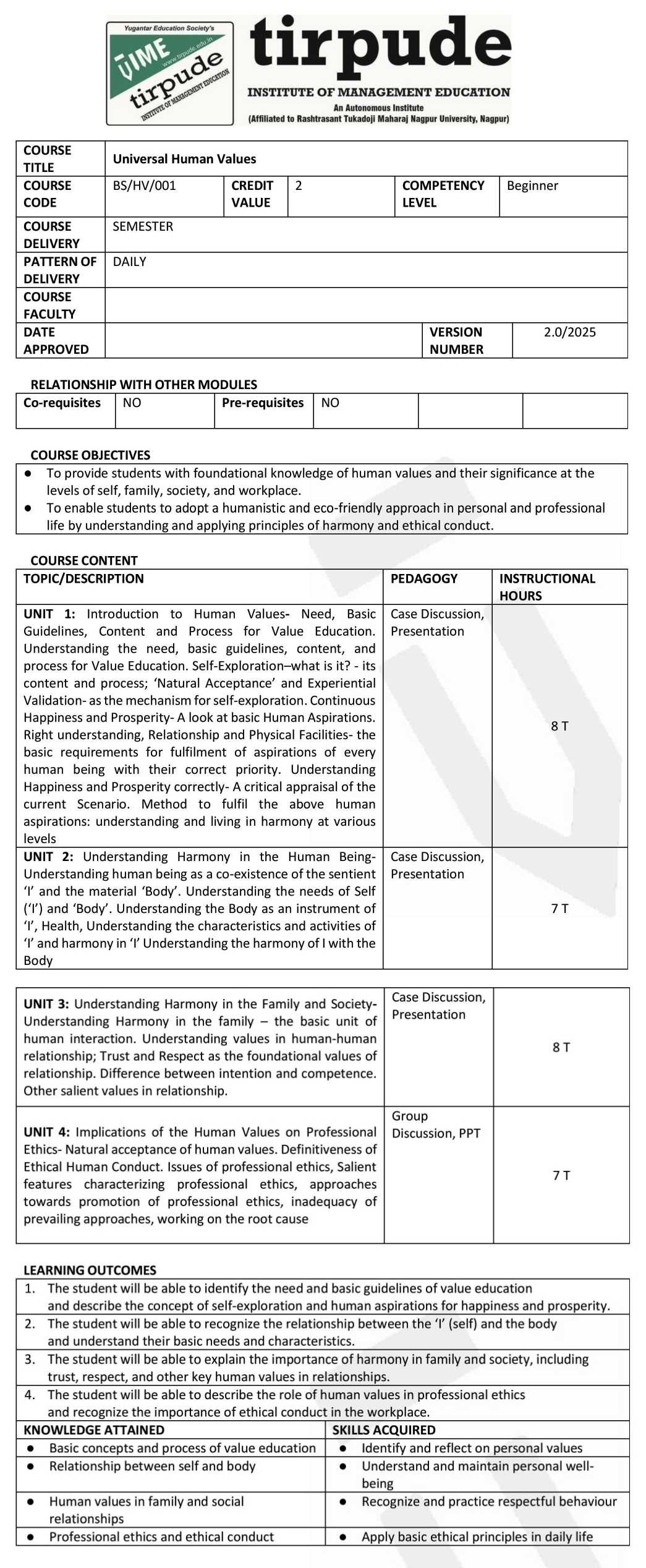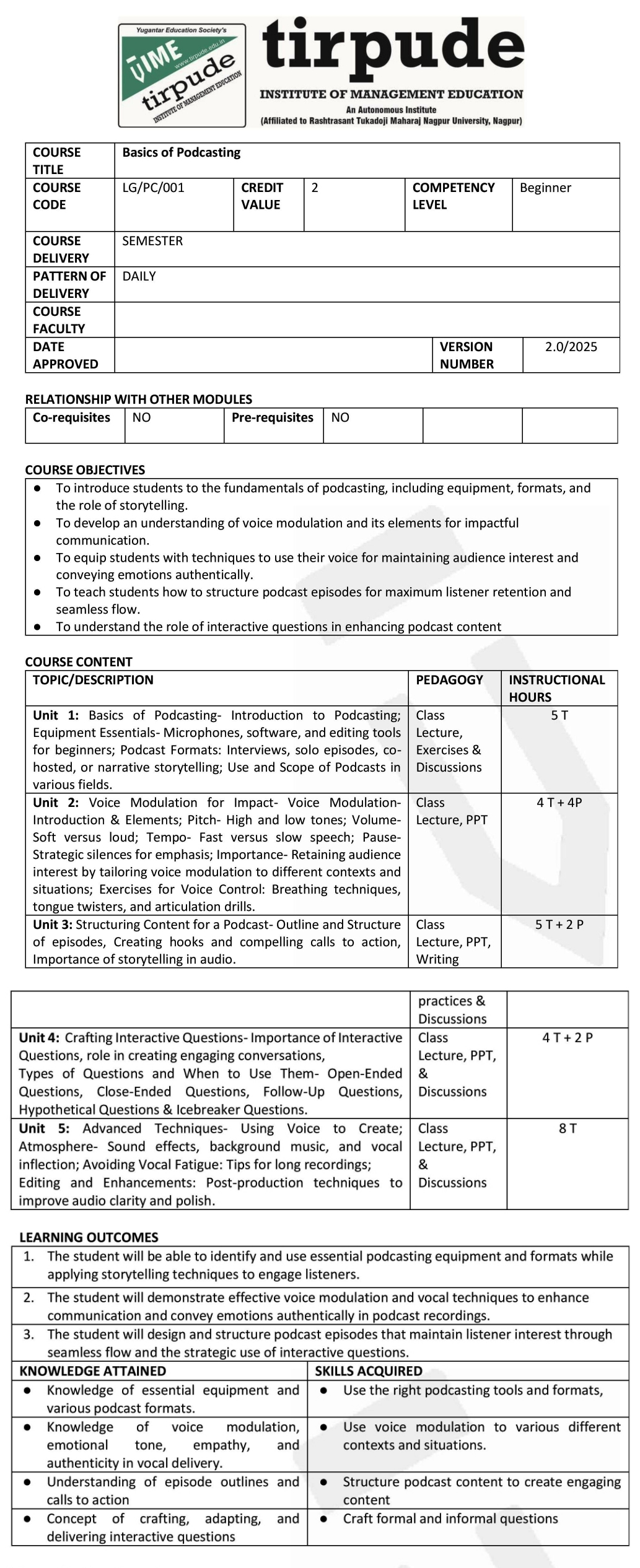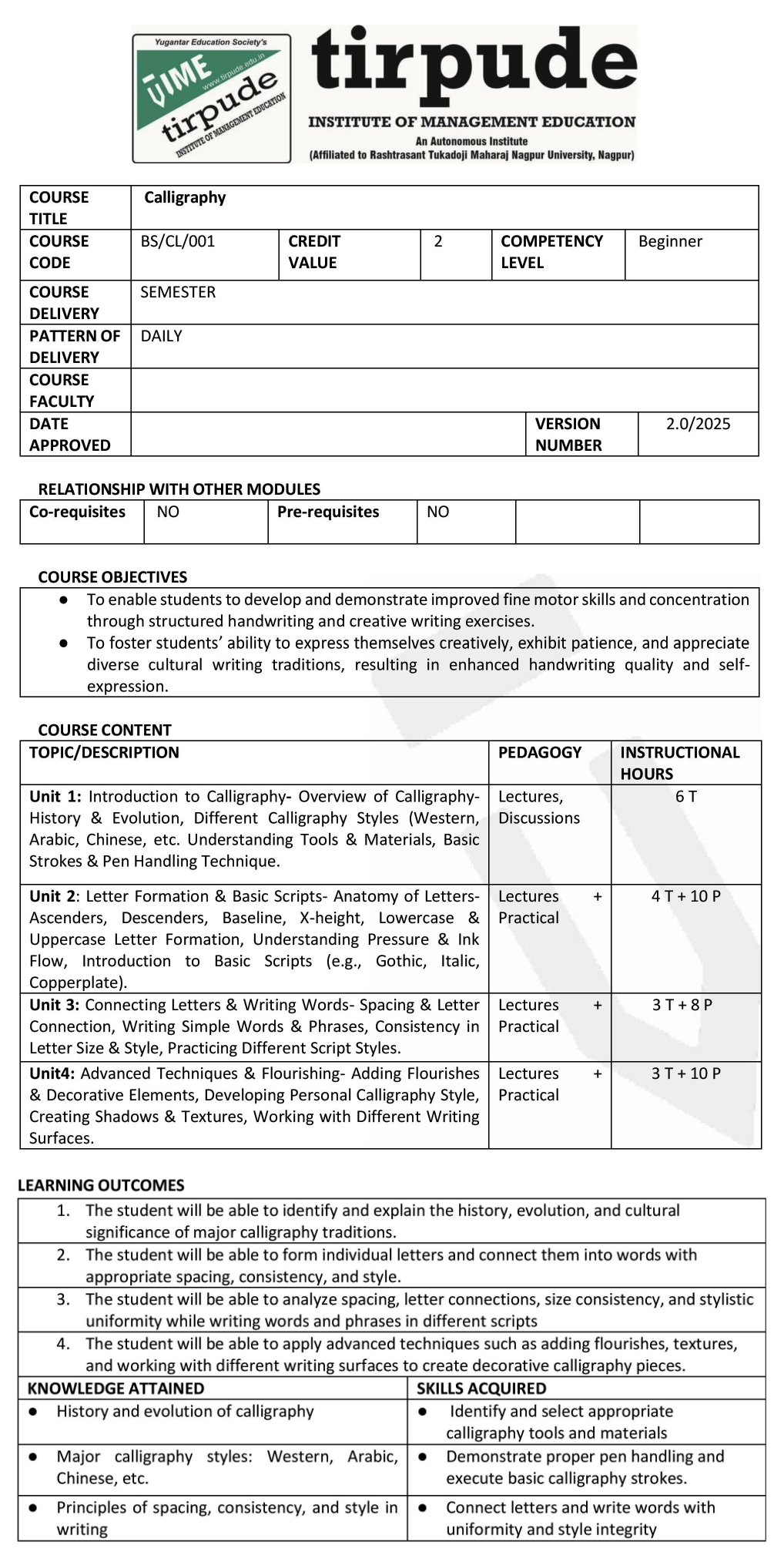 • Co-curricular Course