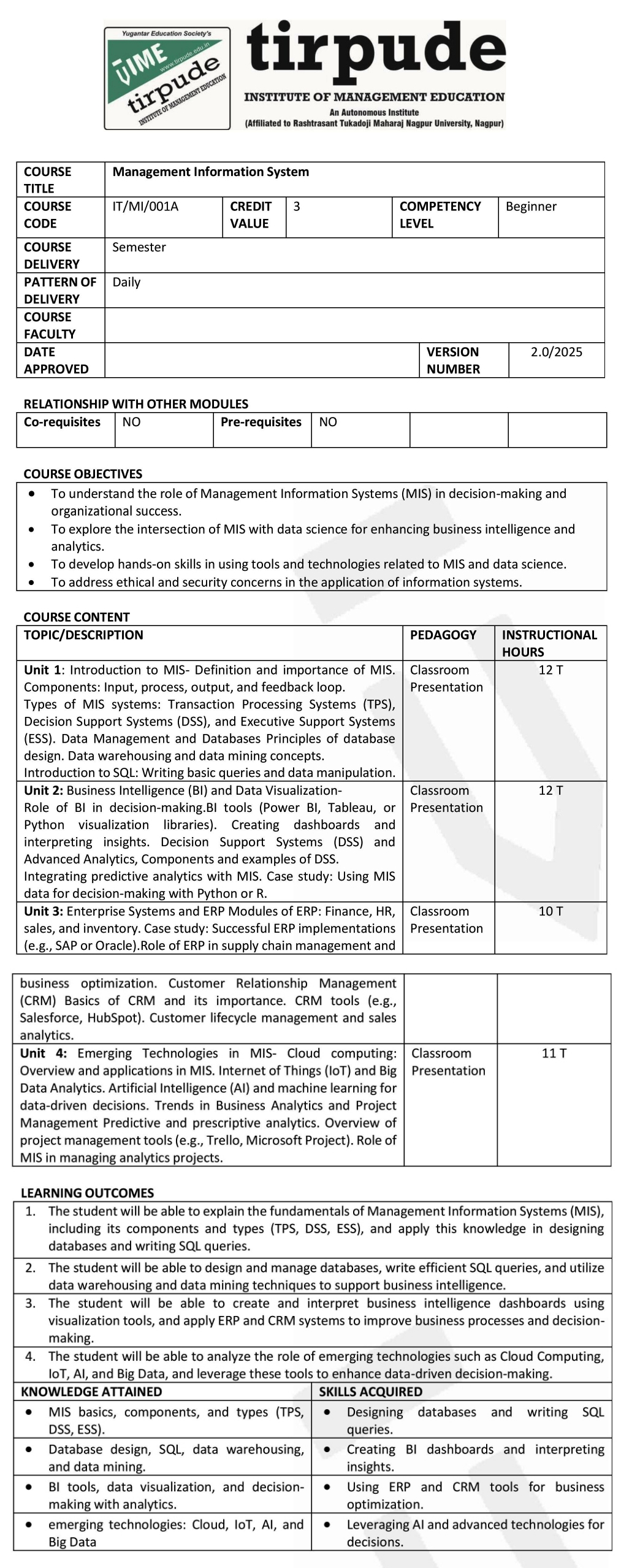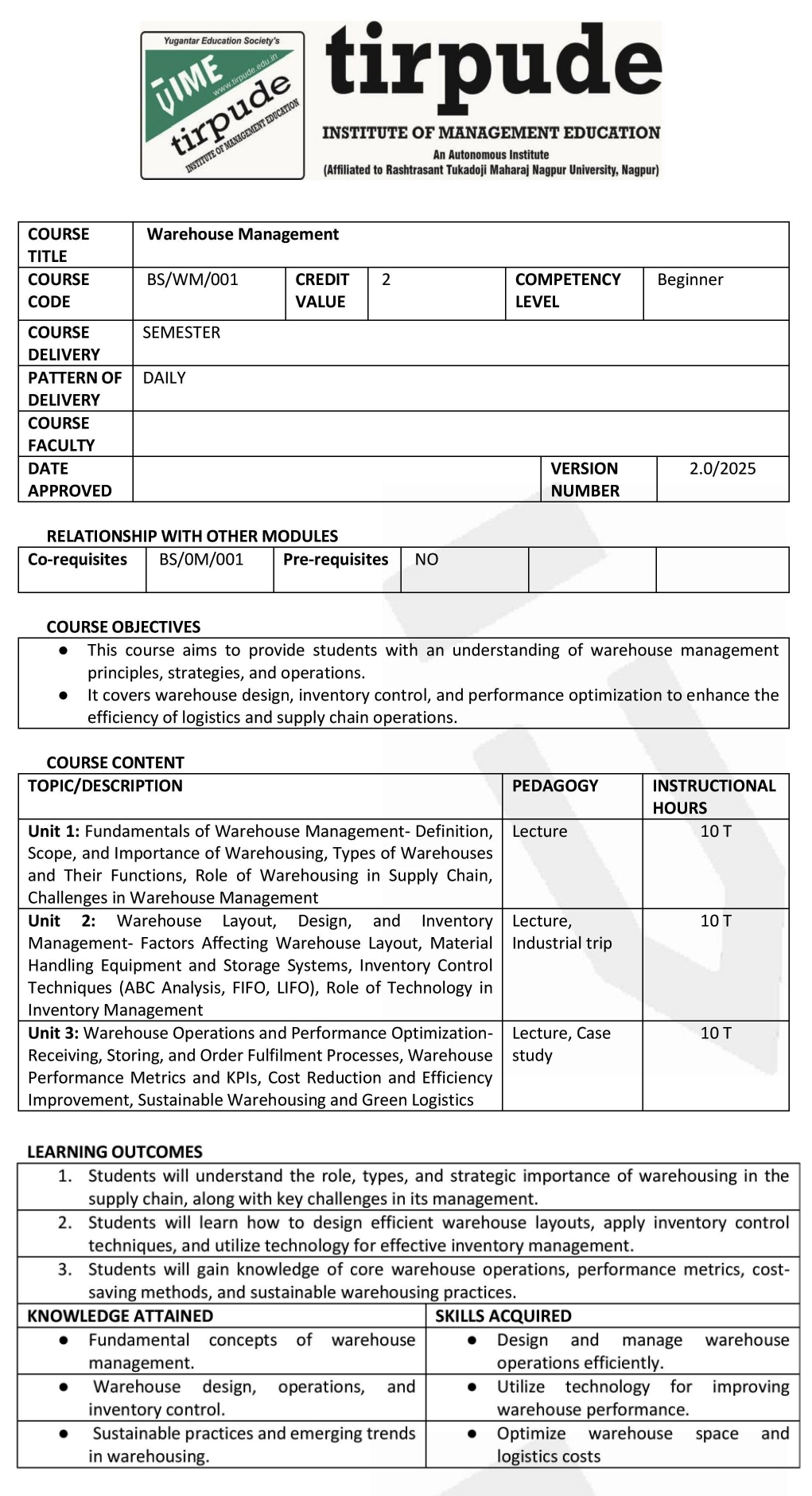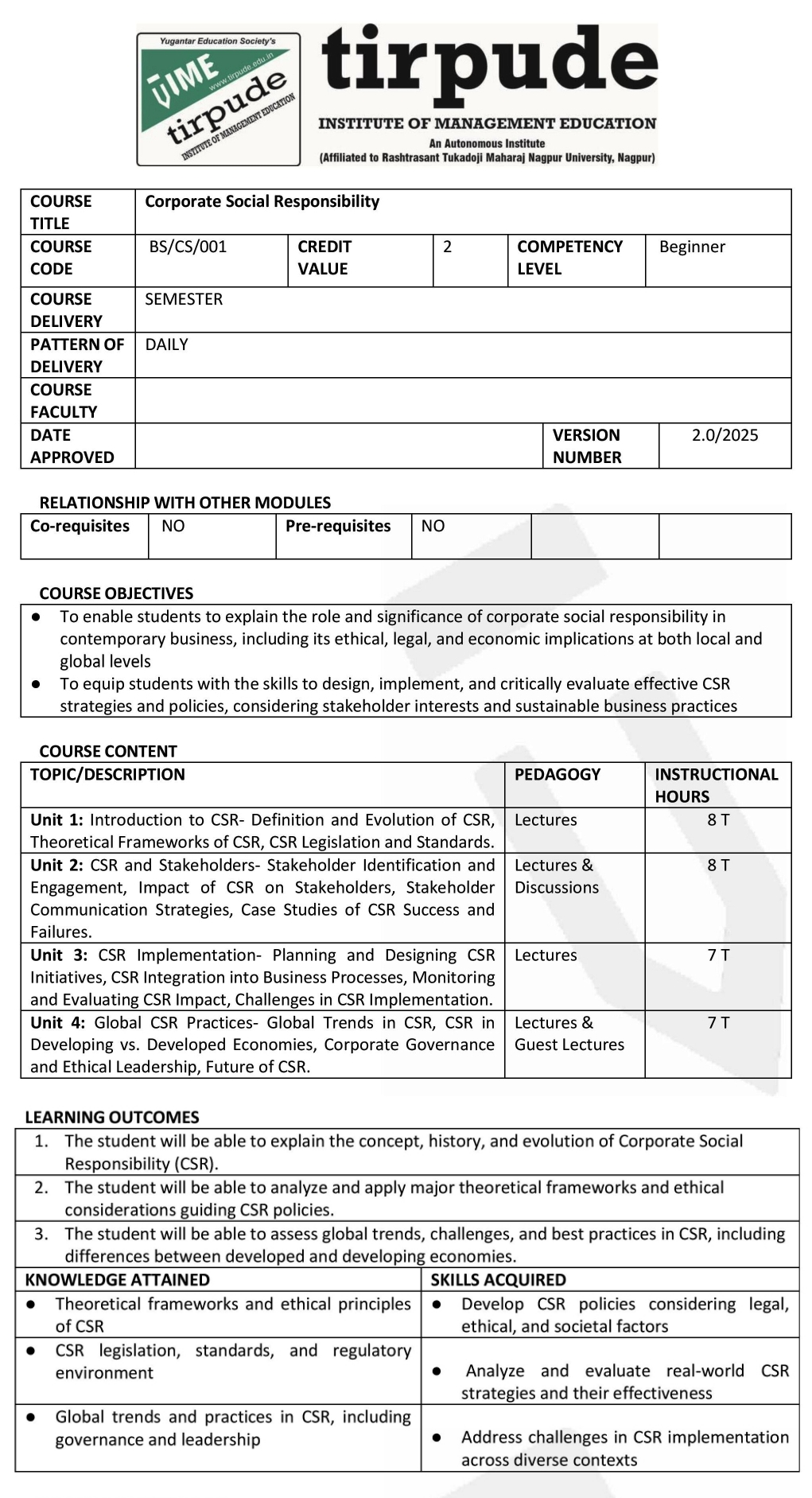 Tirpude Institute of Management Education is an autonomous institution approved by the All India Council for Technical Education (AICTE),New Delhi,  recognized by Directorate of Technical Education, Government of Maharashtra, and affiliated to RTM Nagpur University. We adhere to the highest academic standards and continuously update our programs to meet industry demands. As a private autonomous institute affiliated with RTMNU, Tirpude is widely recognized as a top BBA and management institute under RTMNU and in Nagpur.