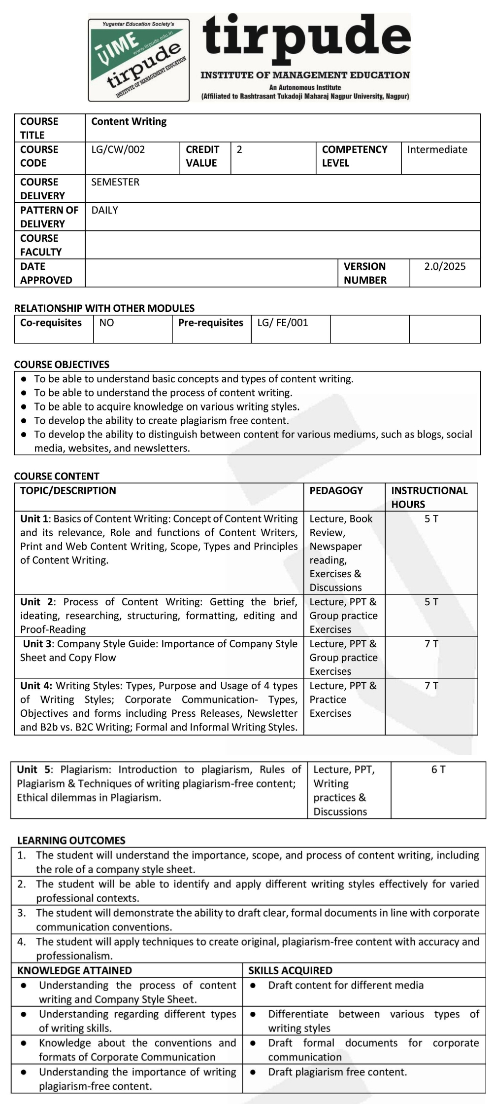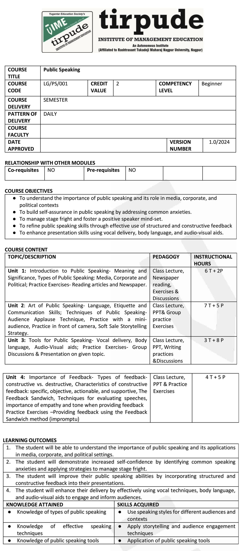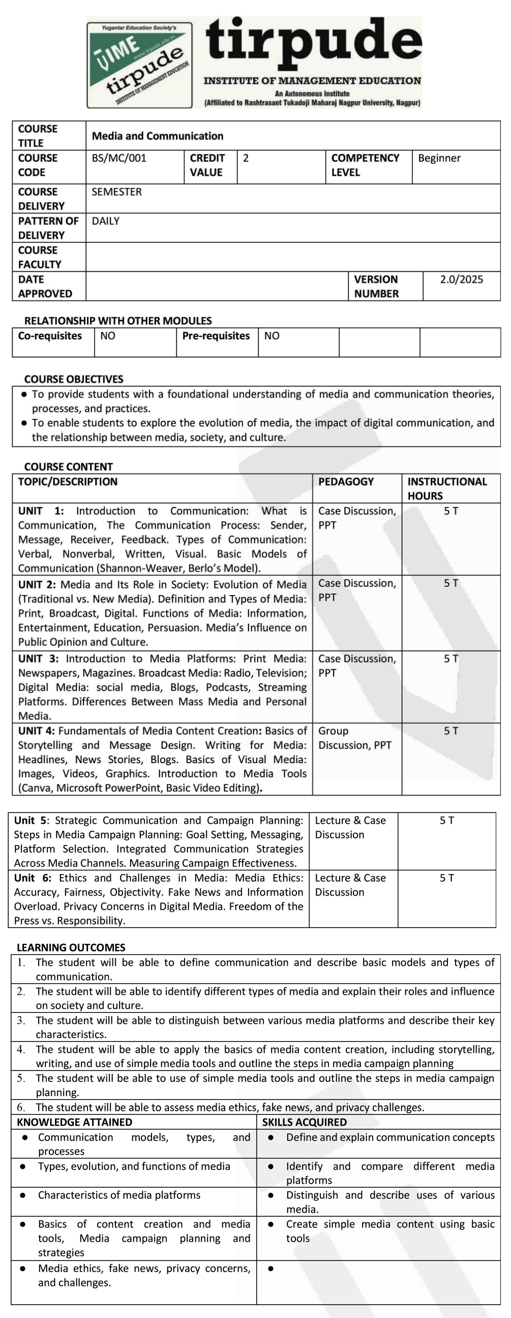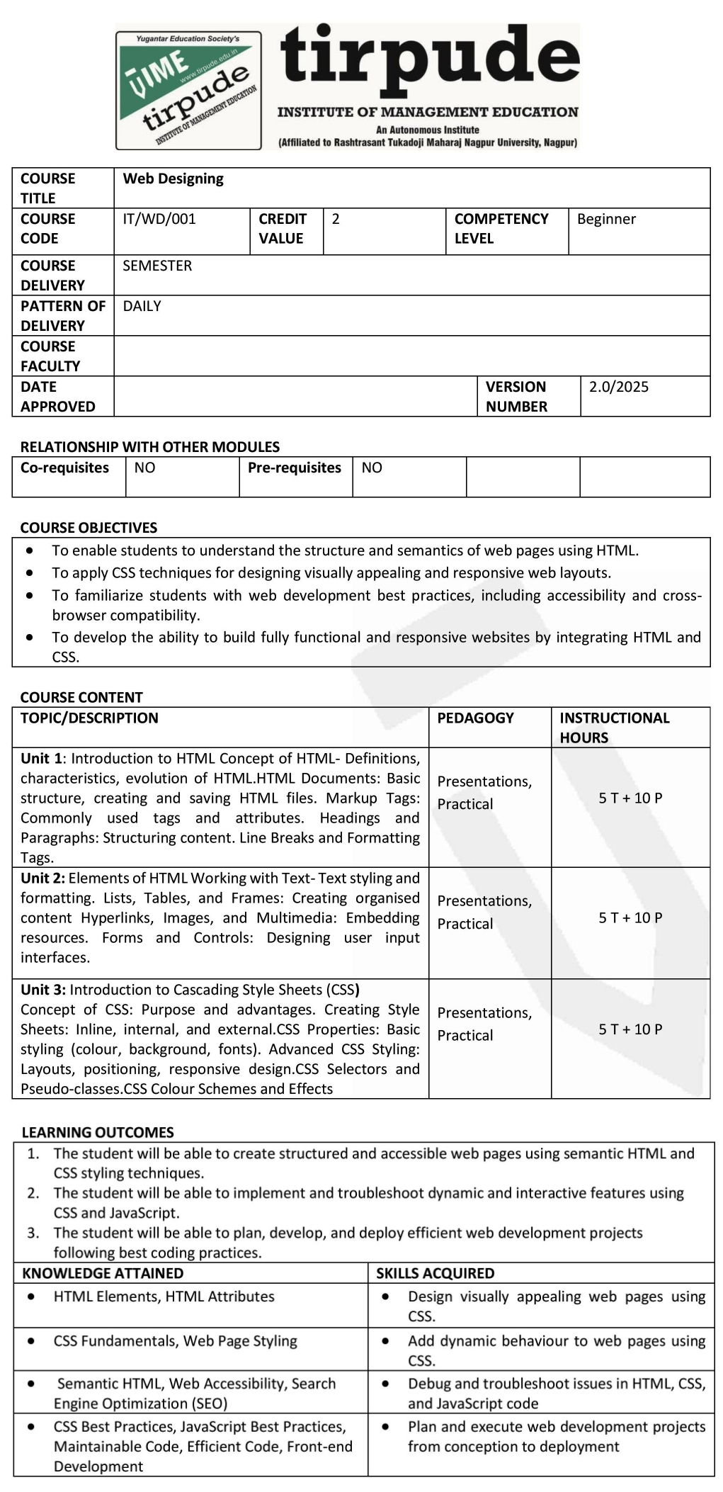 Tirpude Institute of Management Education is an autonomous institution approved by the All India Council for Technical Education (AICTE),New Delhi,  recognized by Directorate of Technical Education, Government of Maharashtra, and affiliated to RTM Nagpur University. We adhere to the highest academic standards and continuously update our programs to meet industry demands. As a private autonomous institute affiliated with RTMNU, Tirpude is widely recognized as a top BBA and management institute under RTMNU and in Nagpur.