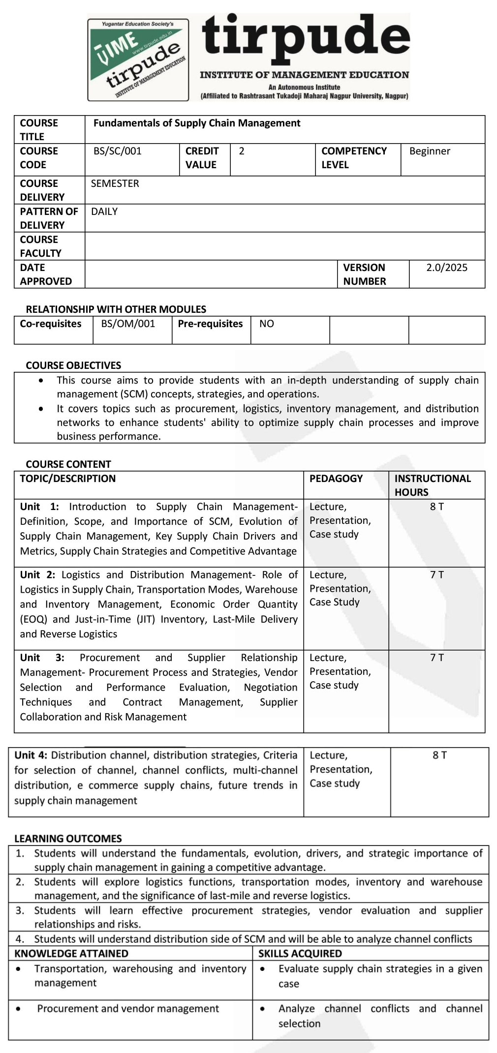 • DSE – VIII: Inward Logistics Management