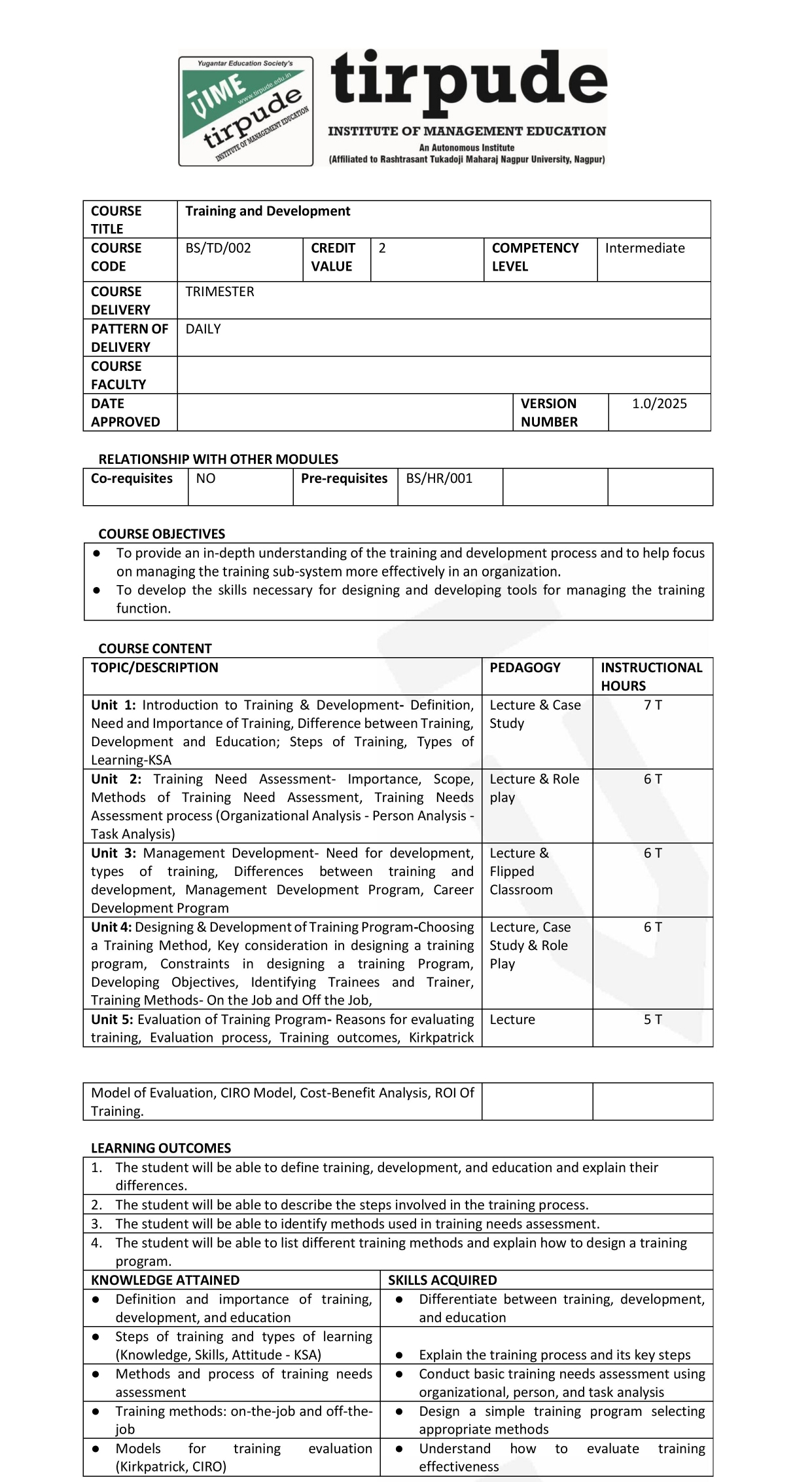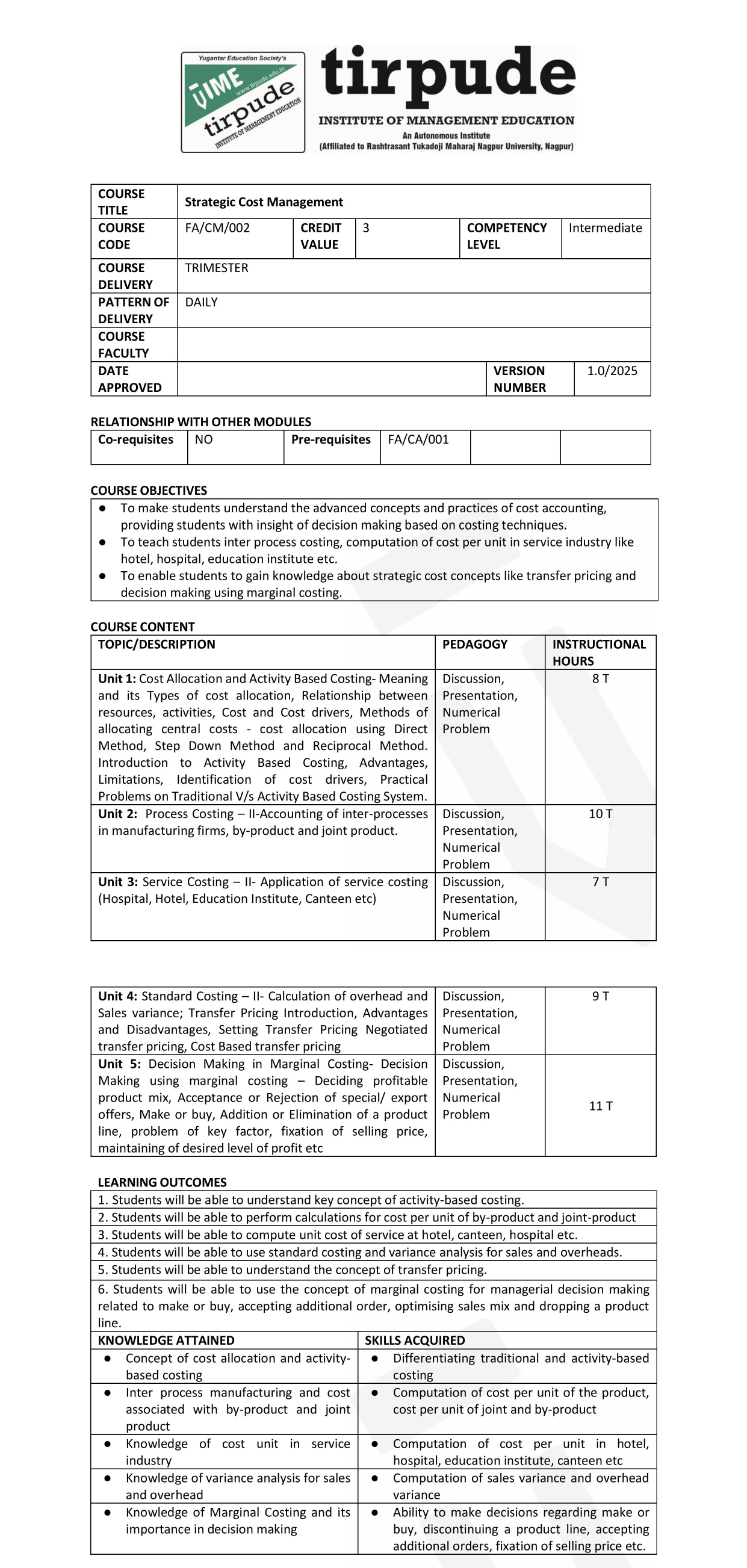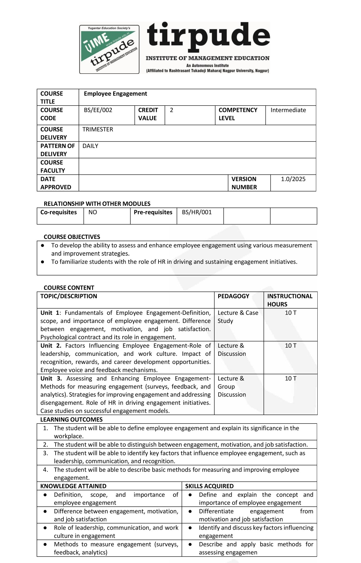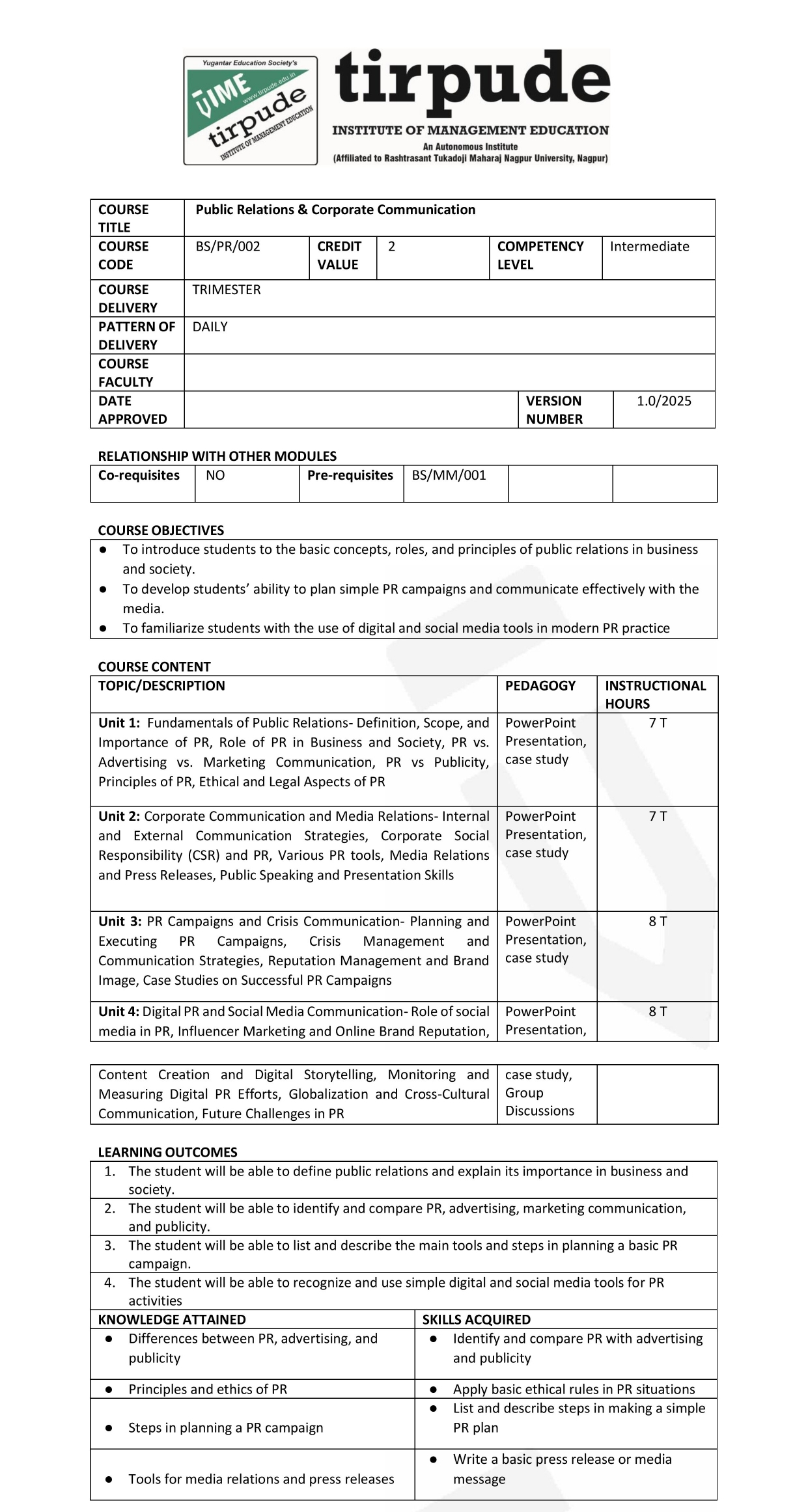 Tirpude Institute of Management Education is an autonomous institution approved by the All India Council for Technical Education (AICTE),New Delhi, recognized by Directorate of Technical Education, Government of Maharashtra, and affiliated to RTM Nagpur University. We adhere to the highest academic standards and continuously update our programs to meet industry demands.