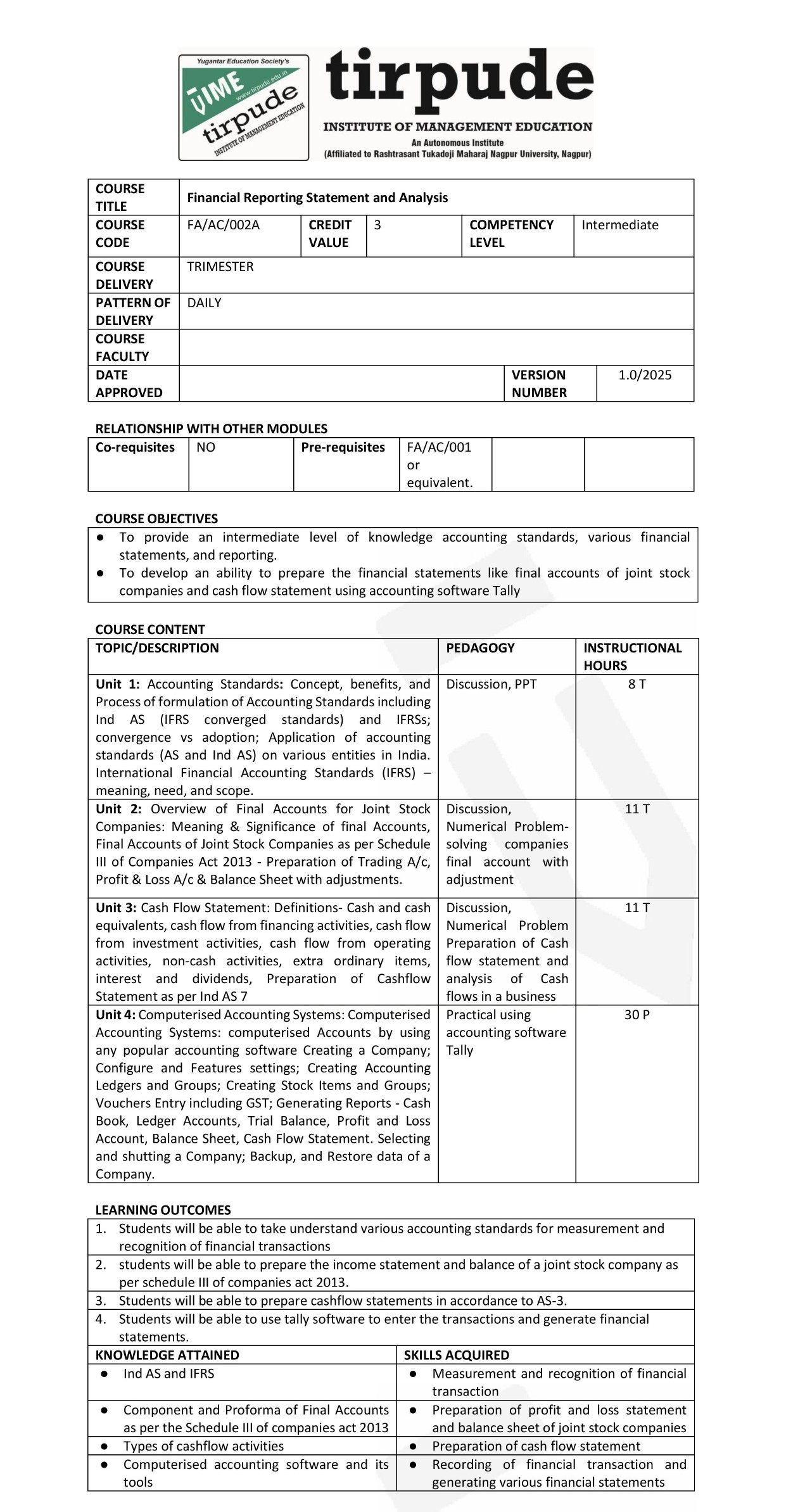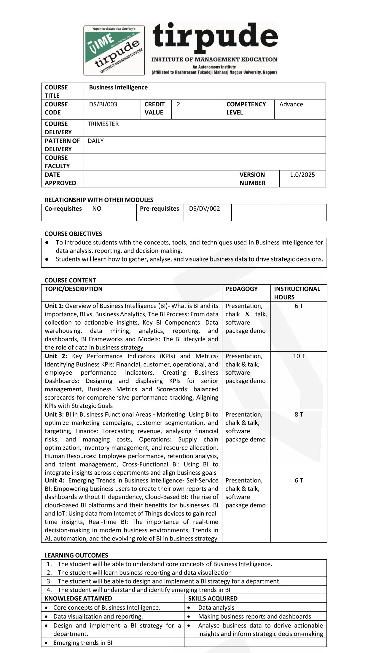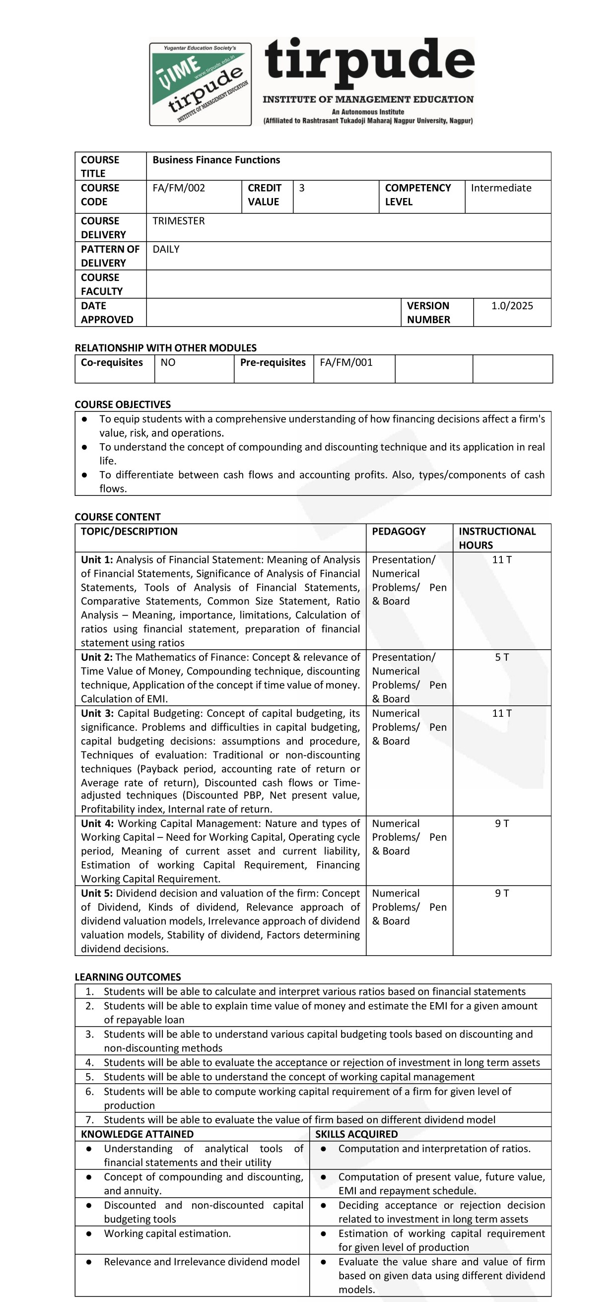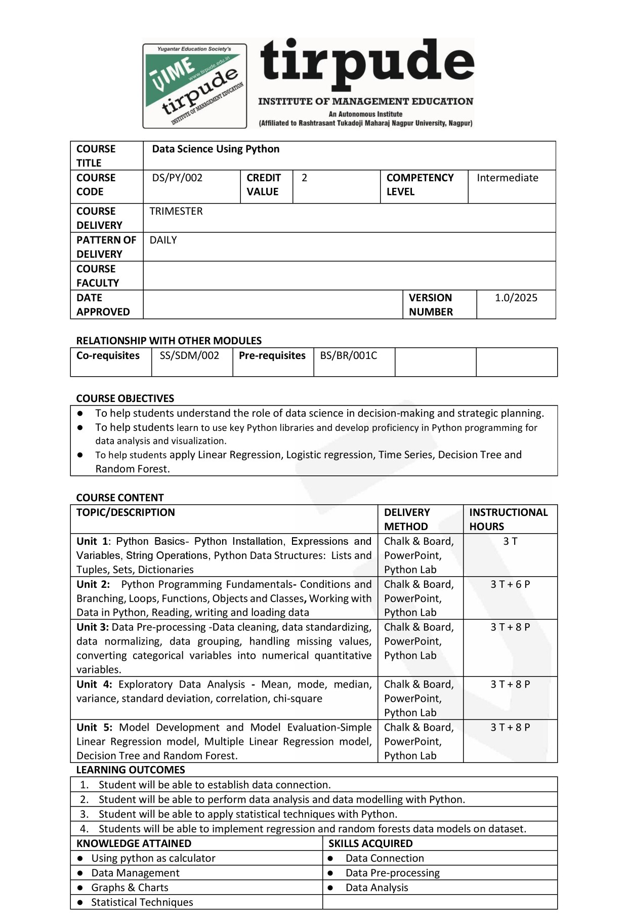 Tirpude Institute of Management Education is an autonomous institution approved by the All India Council for Technical Education (AICTE),New Delhi, recognized by Directorate of Technical Education, Government of Maharashtra, and affiliated to RTM Nagpur University. We adhere to the highest academic standards and continuously update our programs to meet industry demands.