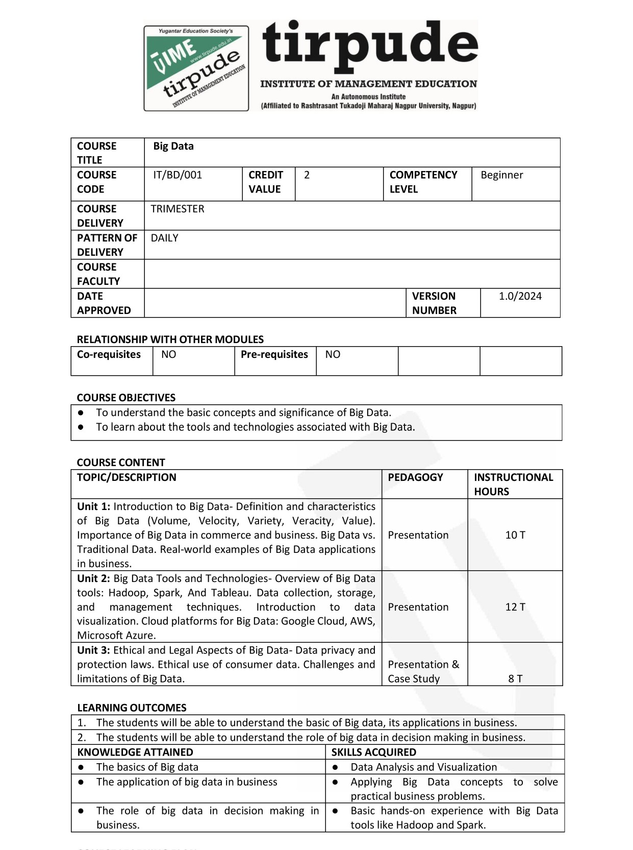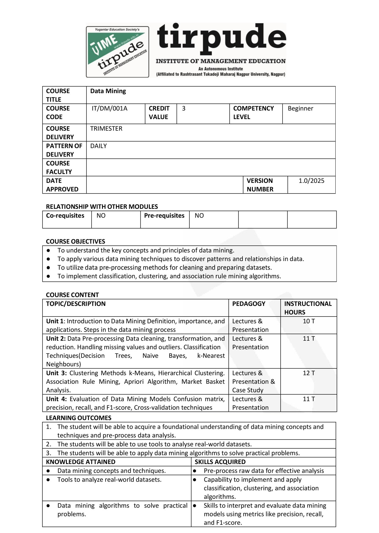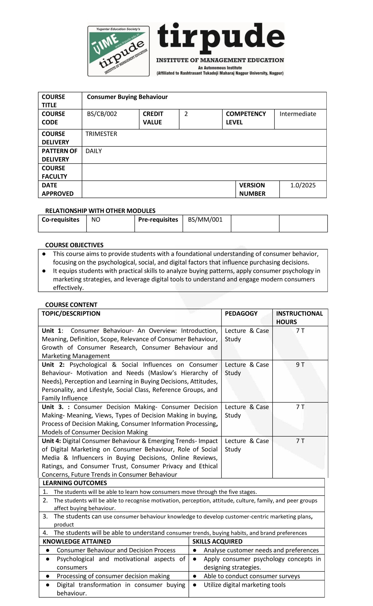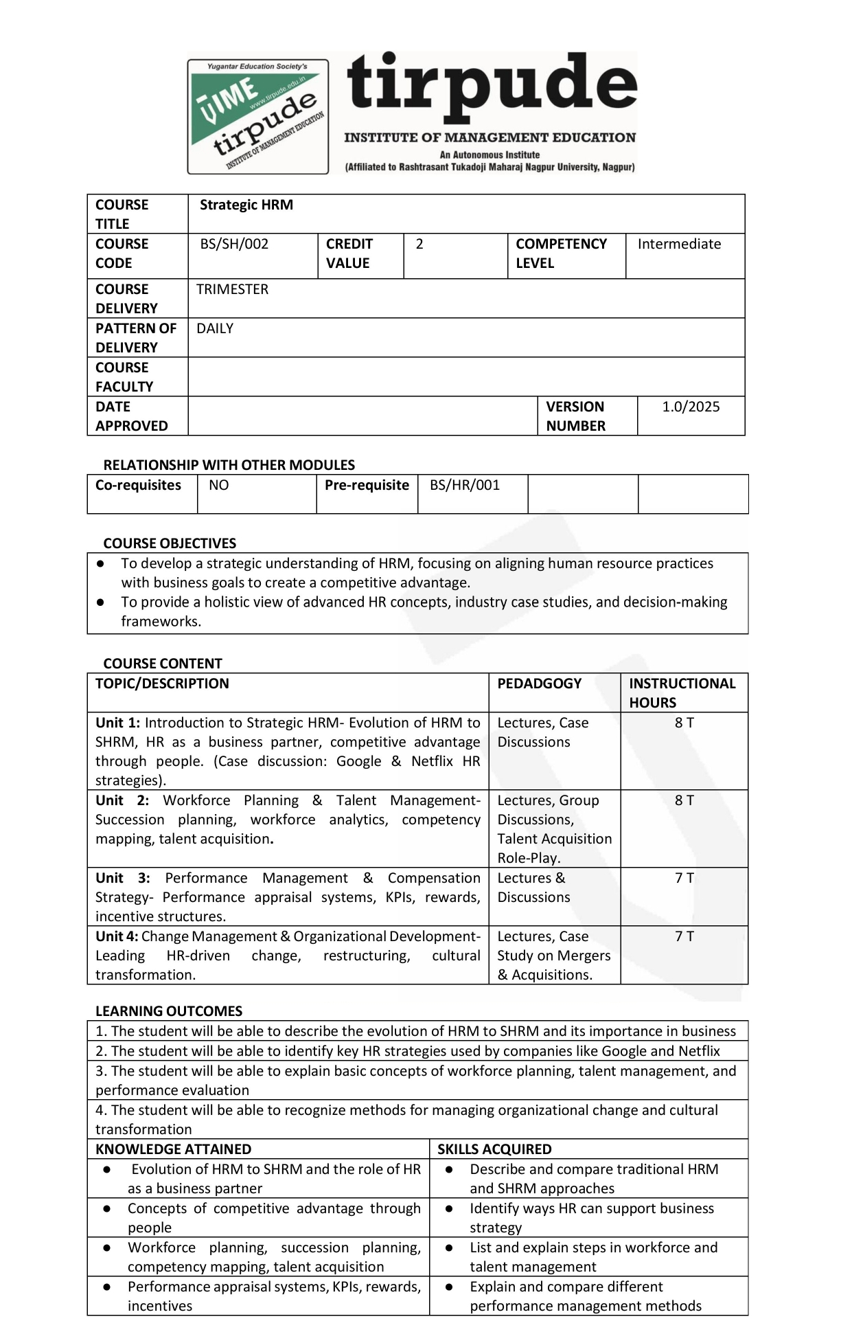 Tirpude Institute of Management Education is an autonomous institution approved by the All India Council for Technical Education (AICTE),New Delhi, recognized by Directorate of Technical Education, Government of Maharashtra, and affiliated to RTM Nagpur University. We adhere to the highest academic standards and continuously update our programs to meet industry demands.