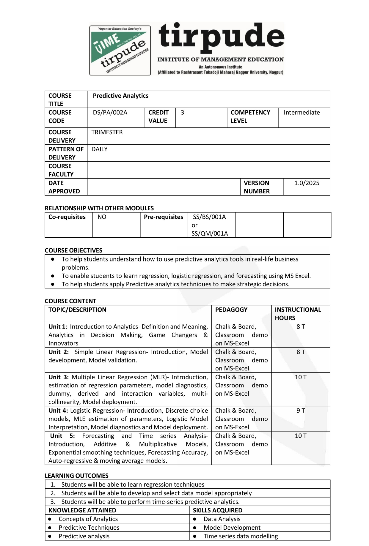 The MBA program at Tirpude Institute of Management Education, Nagpur is a 2-year trimester-based postgraduate program designed to develop strategic thinking, leadership skills, and cross-functional expertise in management. With specializations in Marketing, Finance, HR and Business Analytics it provides a comprehensive business education. Recognized among the top MBA colleges in Central India, Tirpude’s curriculum emphasizes academic rigor, hands-on internships, real-time industry projects, soft skills, and entrepreneurship development — making it one of the best management institutes under RTM Nagpur University.