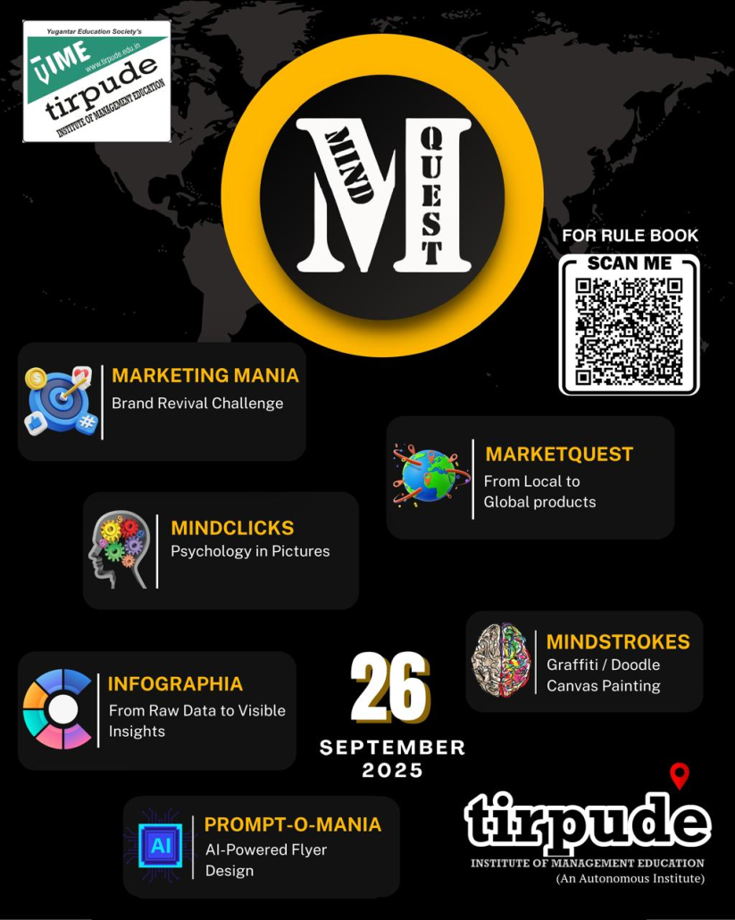 The events slated in Mind Quest provides a platform to the students to showcase their presentation skills and application of theoretical concepts and their ability to face the competition. With this aspect in mind, Mind Quest is designed to be a bouquet of presentation skills, creativity and analytical abilities. Mind Quest provides a platform to students for enhancing their decision making ability.